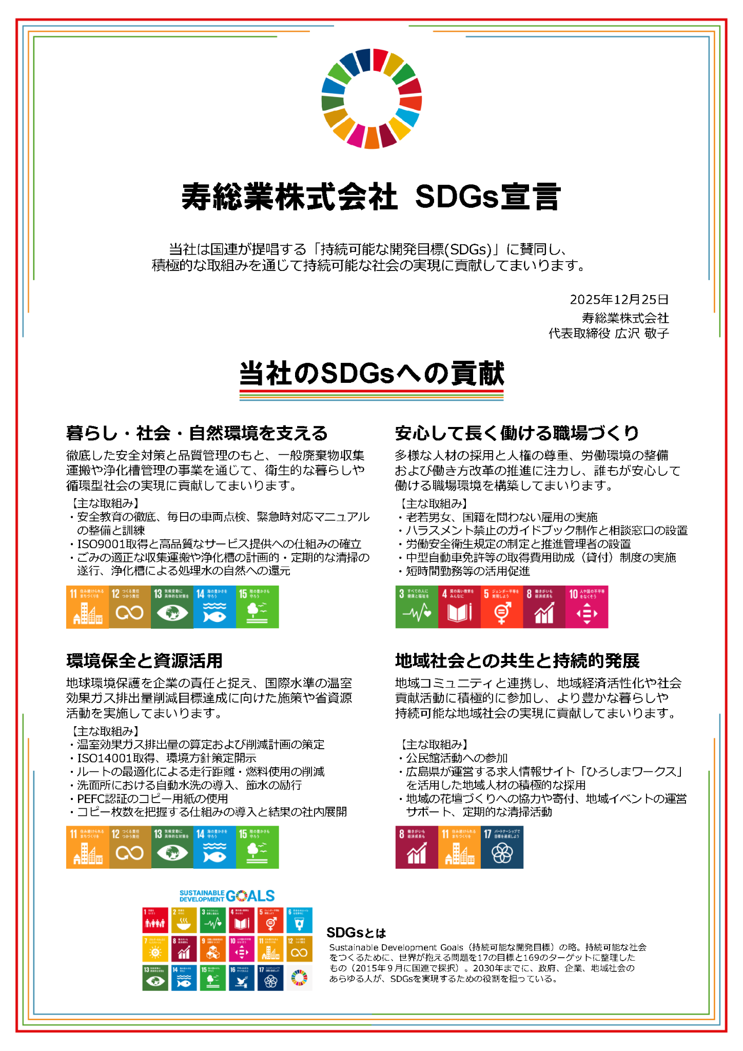 寿総業株式会社 SDGs宣言(2025年12月25日)